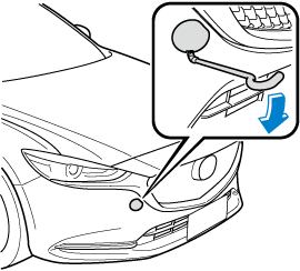 やむをえずロープでけん引してもらうときは、車両の前側にあるけん引フックを使用し、次の手順で行なってください。