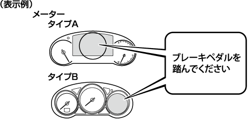 ブレーキペダルを踏まずにプッシュボタンスタートを押したときに表示 |