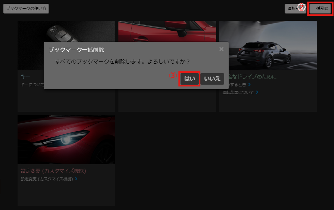 一括削除ボタンを選択すると、警告文が表示されます。