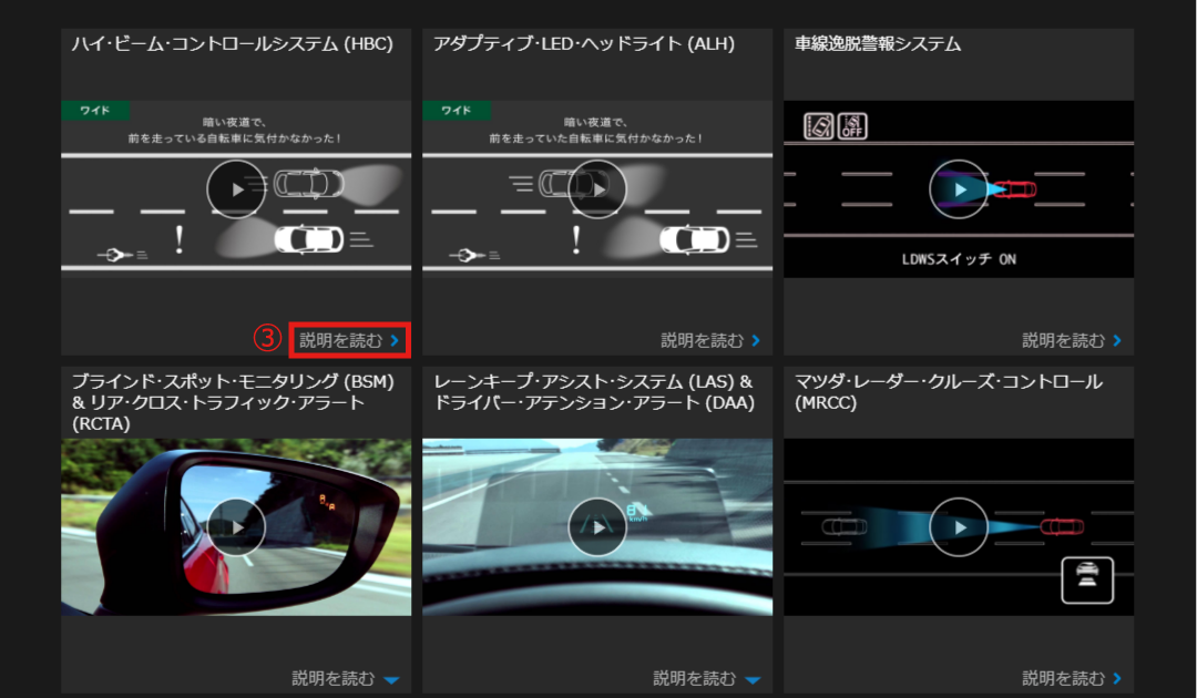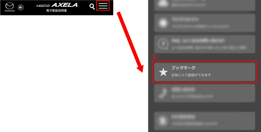 - マツダ販売店で取り付けられた装備品は、付属の取扱説明書をご覧ください。