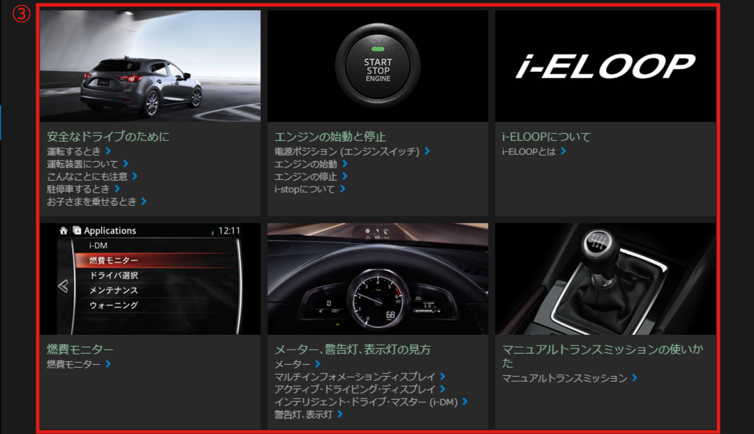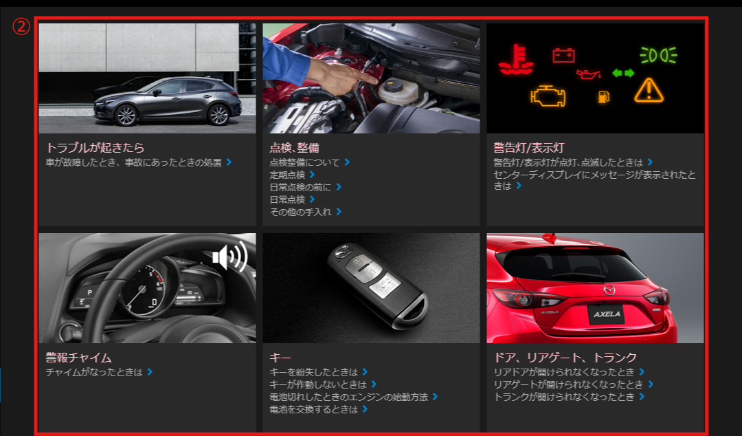マツダコネクト サポート関連情報サイトから目的の情報を検索することができます。