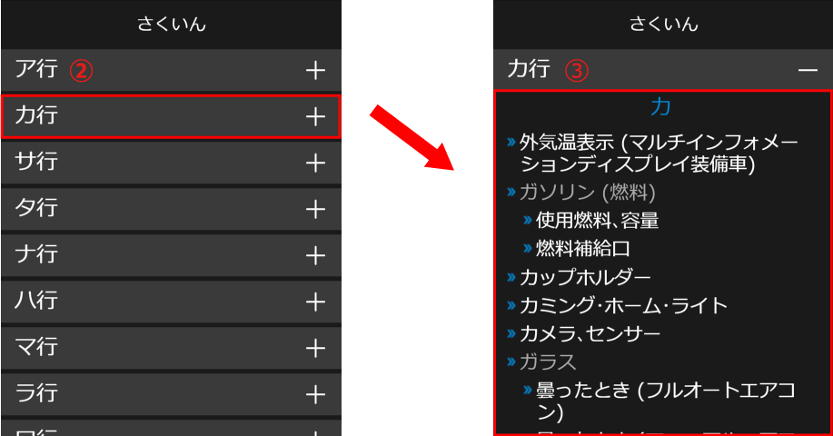 - さくいんには、表示方法が2種類あり、ご利用の機器の画面サイズによって、最適な表示に自動で切り替わります