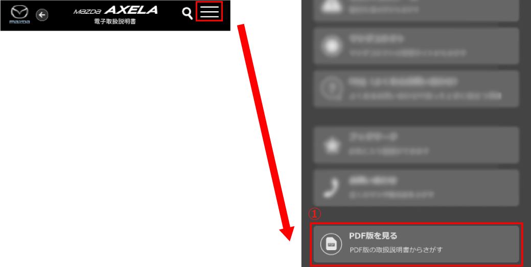 メニューから(PDF版を見る)を選択すると、PDF版の取扱説明書が表示されます。