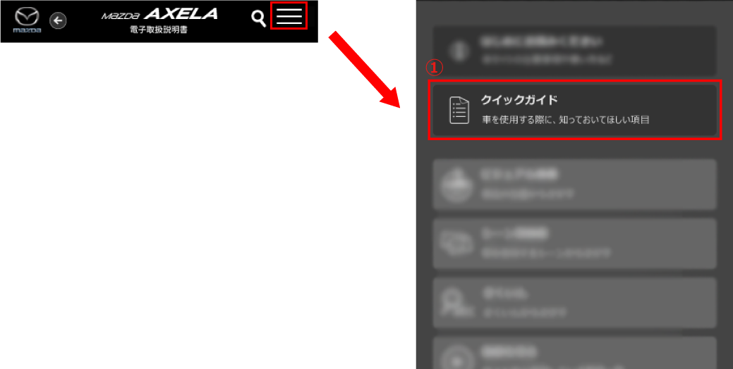 メニューからクイックガイドを選択します。