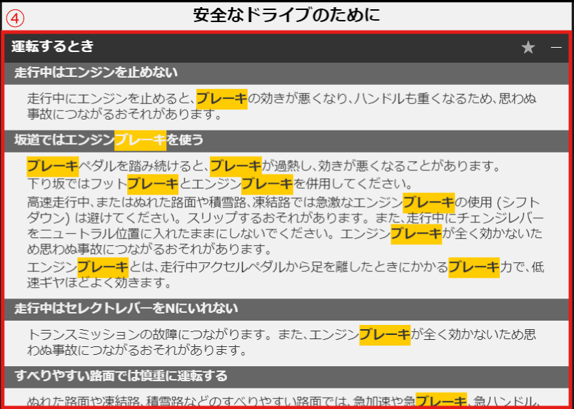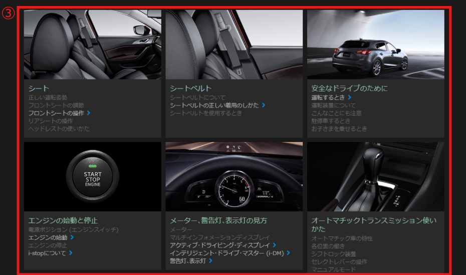 お車をご使用するシーンから目的の情報を検索することができます。