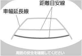 距離目安線は水平な路面を基準に表示されているため、画面に映っている立体物との距離は実際とは異なります。
