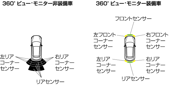 自車の状況や路面状況により、映し出される範囲は異なります。
