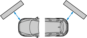 車両が傾いて後部が下がっているときは、カメラに映る障害物は車体後部からの距離が実際よりも遠くにあるように見えます。