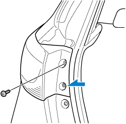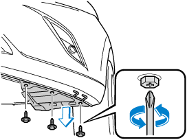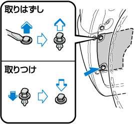 ネジをドライバーなどではずし、マッドガードをめくります。