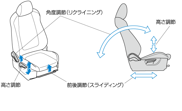マツダが推奨するドライビングポジションにするには、次の手順で調節します。