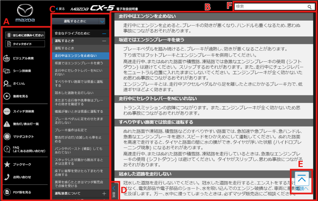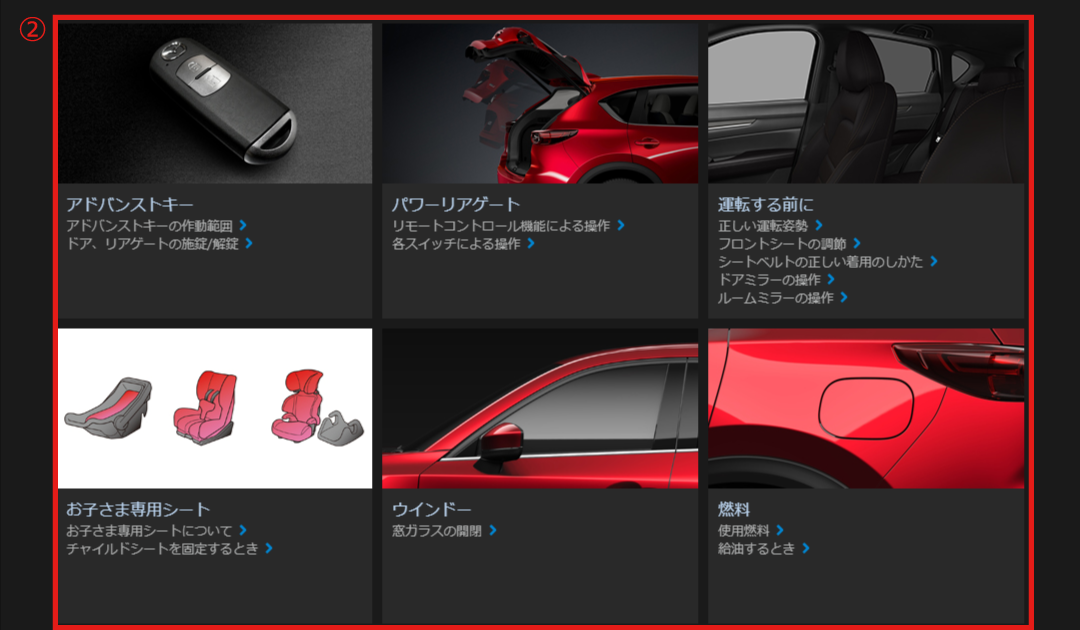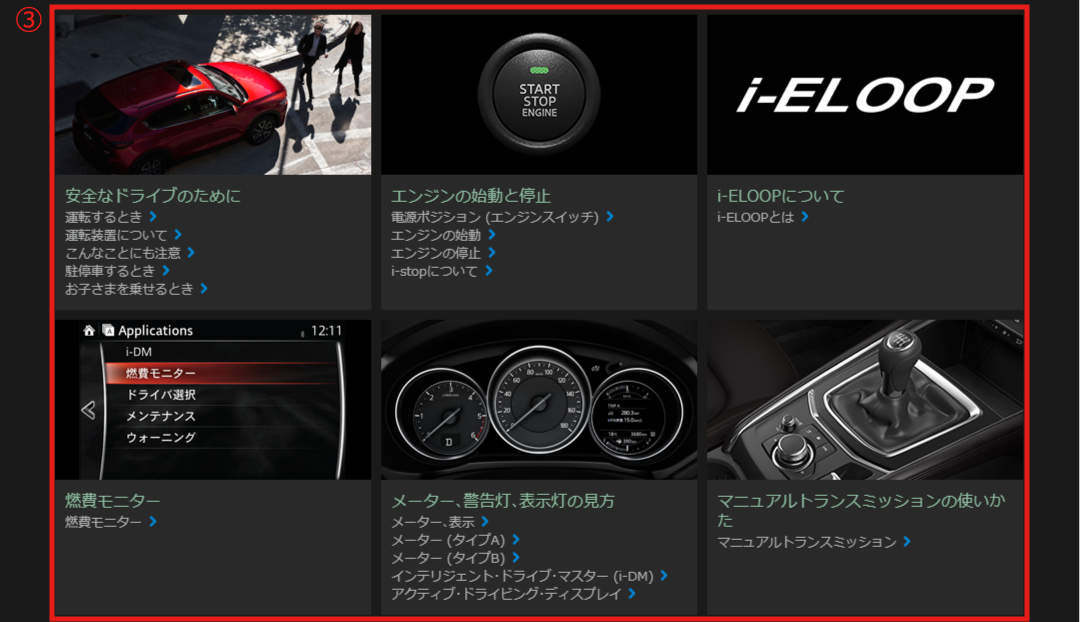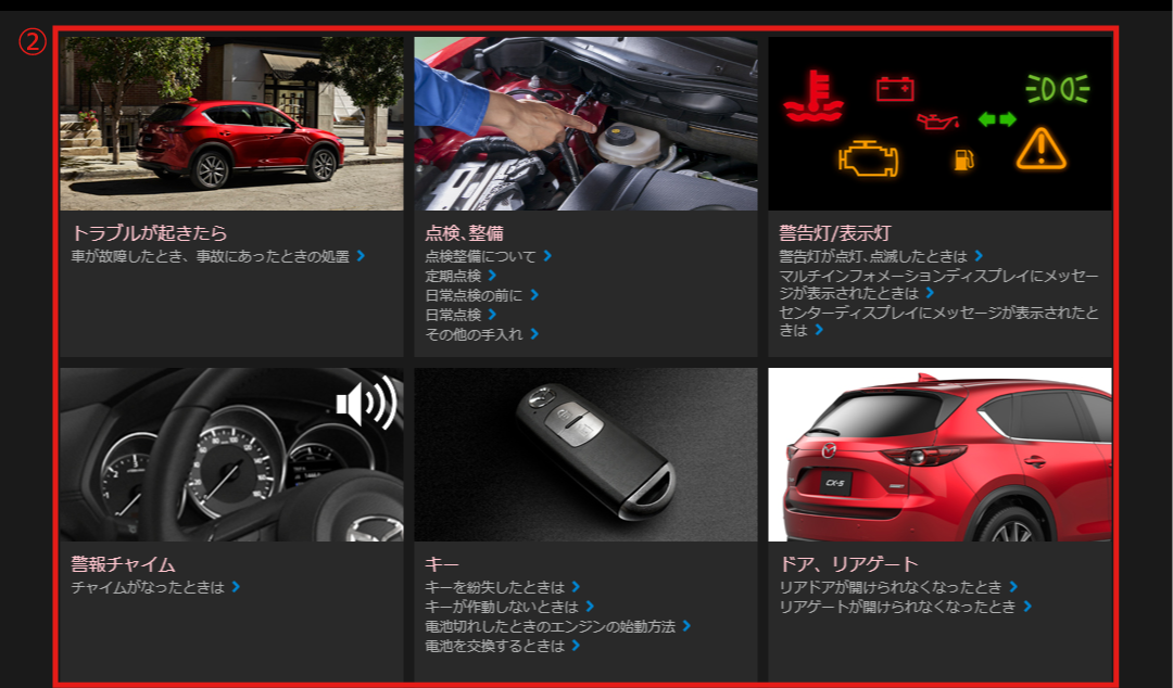 マツダコネクト サポート関連情報サイトから目的の情報を検索することができます。