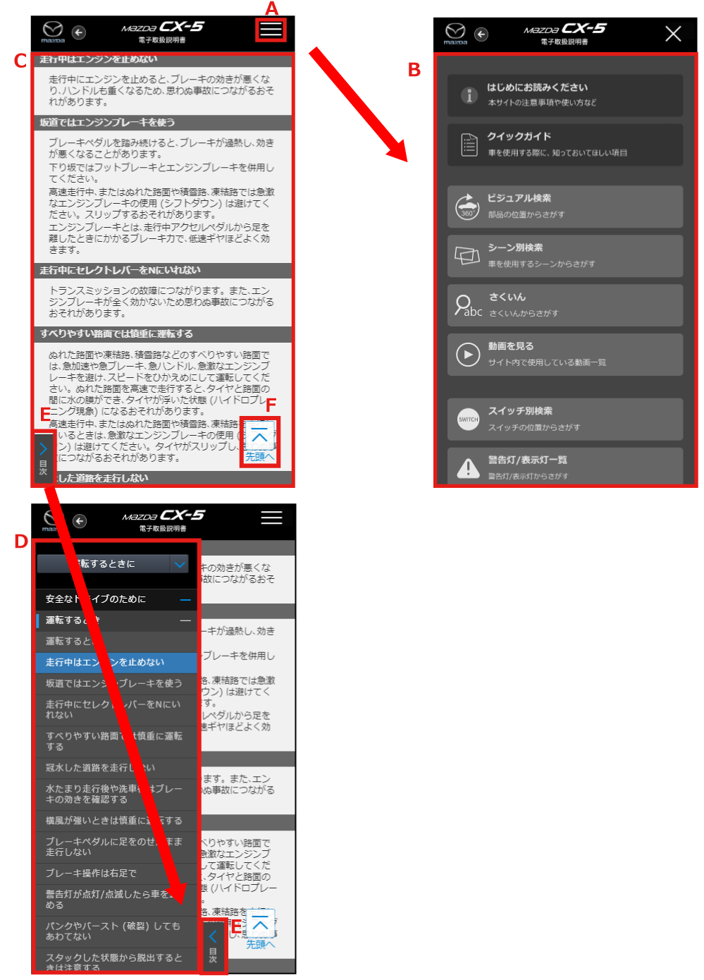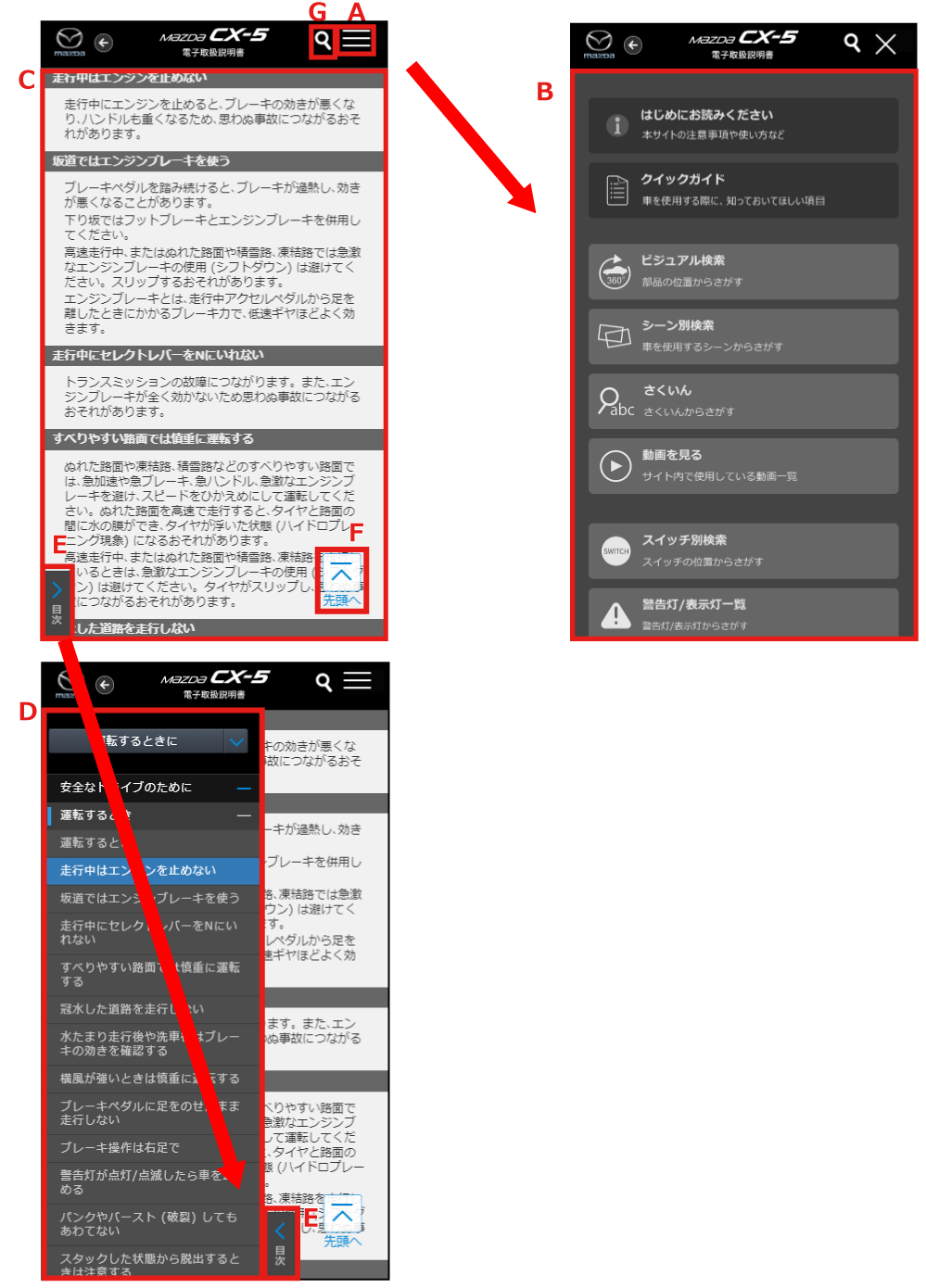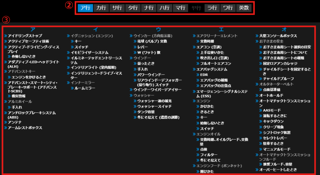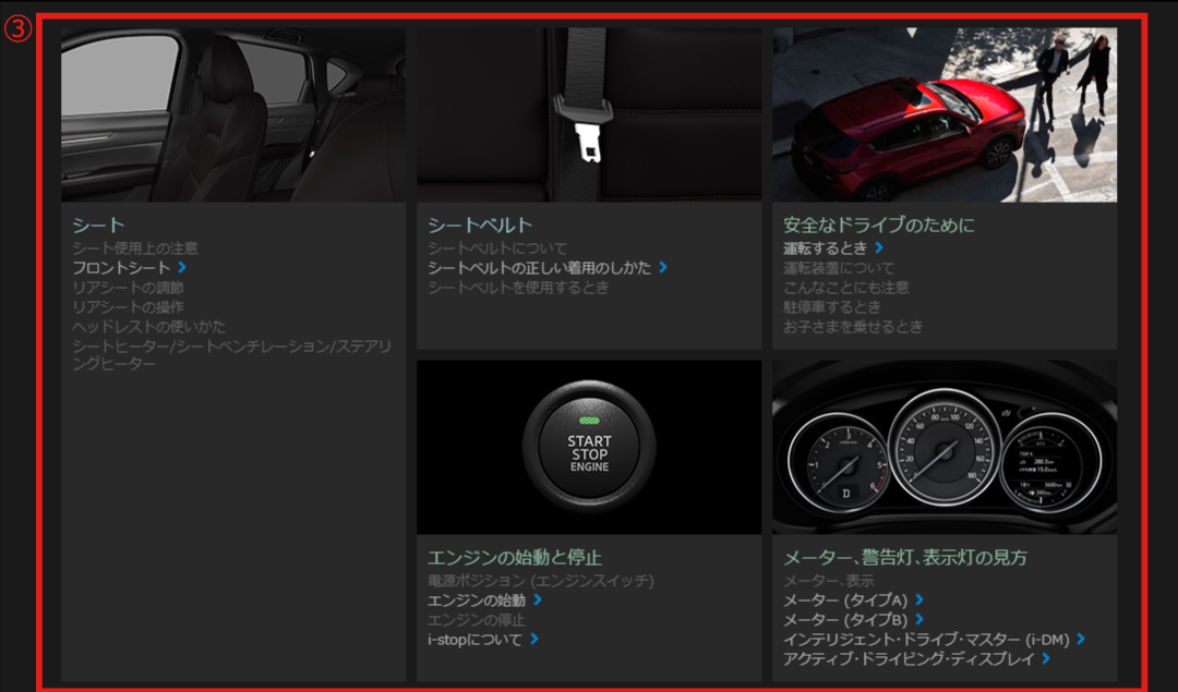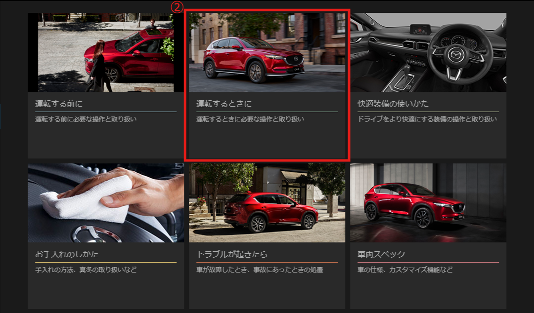 お車をご使用するシーンから目的の情報を検索することができます。