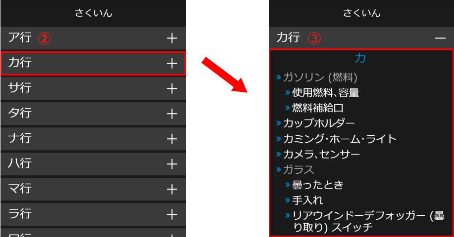 - さくいんには、表示方法が2種類あり、ご利用の機器の画面サイズによって、最適な表示に自動で切り替わります