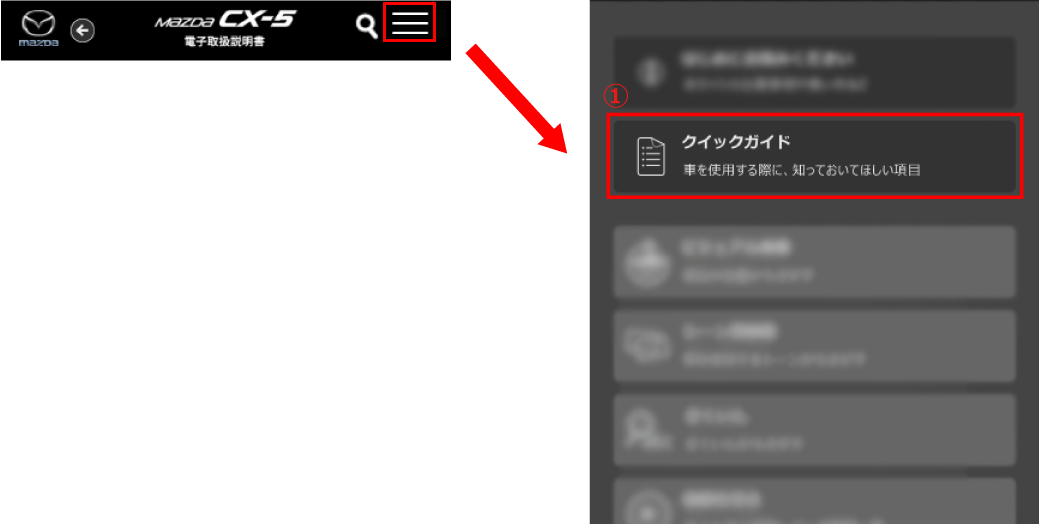 メニューからクイックガイドを選択します。