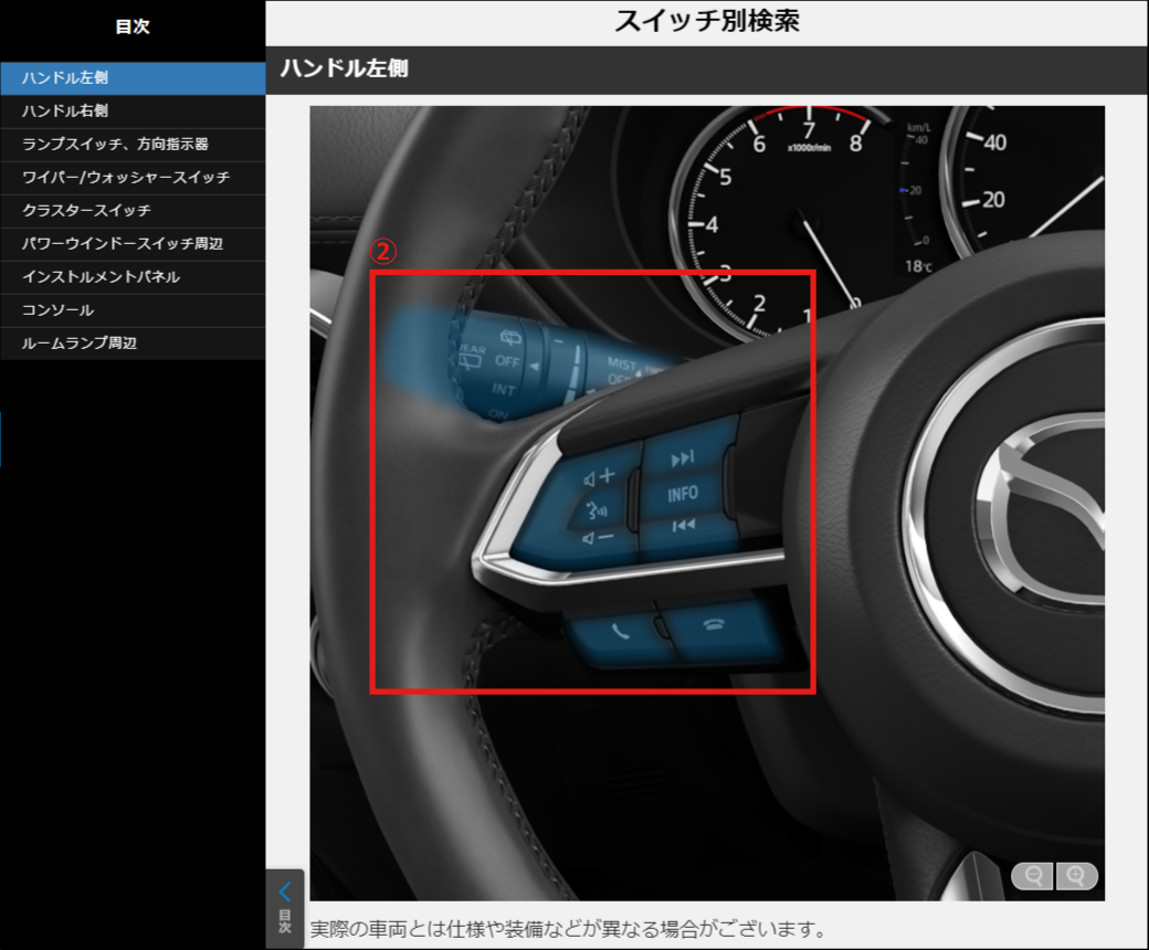 - マツダ販売店で取り付けられた装備品は、付属の取扱説明書をご覧ください。