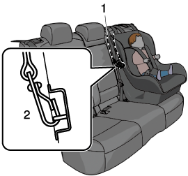 チャイルドシートのテザーストラップを図のようにトップテザーアンカレッジにかけます。