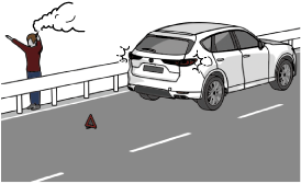 全員が車から降り、ガードレールの外などの安全な場所に、すみやかに避難する。