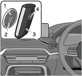 プッシュボタンスタート/パワースイッチ機能に異常があるときは、プッシュボタンスタート/パワースイッチの表示灯 (橙) が点滅します。この場合でもエンジン/ハイブリッドシステムを始動できることがありますが、ただちにマツダ販売店で点検を受けてください。