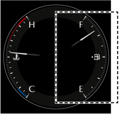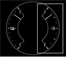 燃料が満タンのときはF (Full) を示し、少なくなるにつれE (Empty) に移行します。