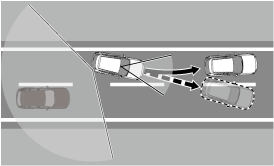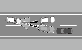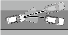 側方危険回避アシスト機能は、隣接車線を走行する車両 (対向車を除く) と自車の衝突回避をアシストします。