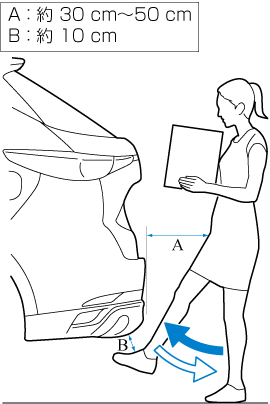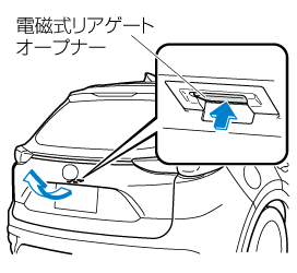 • 坂道などの傾斜地に停車しているとき、風が強いとき、またはリアゲートに積雪があるときは、電動開閉できないことがあります。手動で開閉してください。