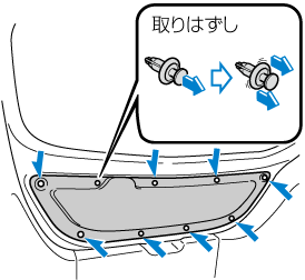 ファスナーを取りはずしてリアゲートトリムをはずします。