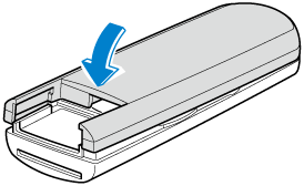 1. 新しい電池の側を上にして差し込み、キャップをかぶせます。
