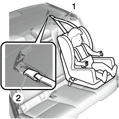 チャイルドシートのテザーストラップを図のようにトップテザーアンカレッジにかけます。