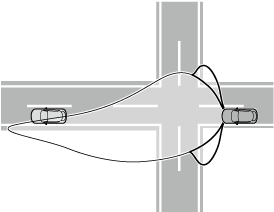 車速が約40 km/h未満で走行中の場合に、ワイド配光ロービームが作動します。