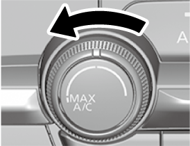 温度調節ダイヤルを反時計回りに完全にまわすと、MAX A/C (最大冷却) になります。