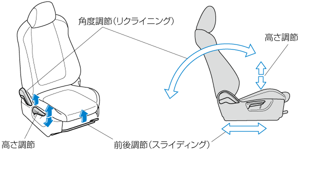 • 運転席シート位置 (角度、前後位置、全体高さ、前端高さ)