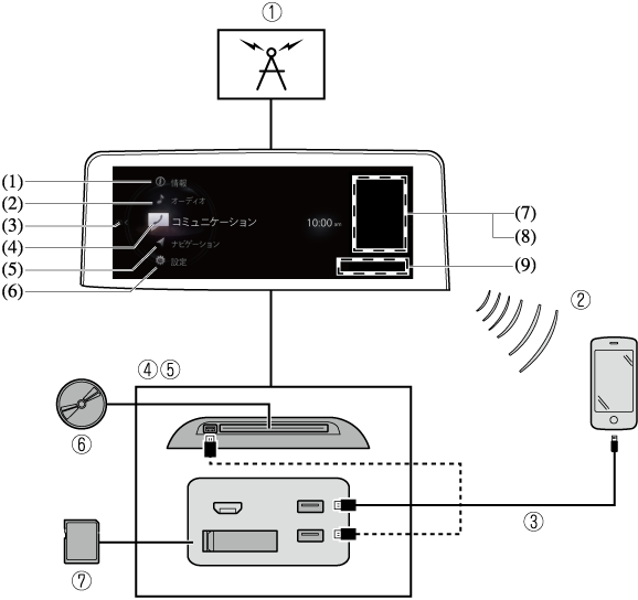 Apple CarPlayに対応したiPhoneを接続することにより、Apple CarPlayを利用することができます。 |