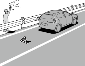 必要に応じて停止表示板 (停止表示灯)、発炎筒を使用し、後続車に故障車であることを知らせます。