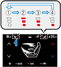 車内環境に応じてシート温度が4段階 (高、中、低、OFF) で自動制御されます。