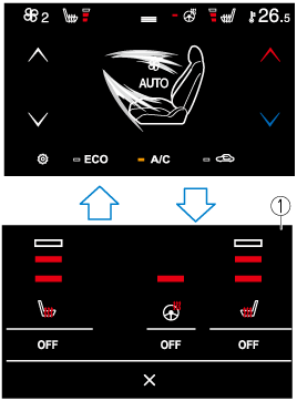 をタッチまたは下にフリックすると、シートヒーターの設定画面を表示させることができます。
