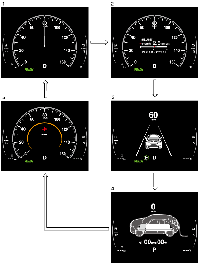 駆動用バッテリーの残量を示します。