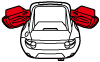 1. 作動確認のため、電源ポジションをONにすると点灯し、しばらくすると消灯、またはエンジンがかかると消灯します。点灯しない、または消灯しないときはマツダ販売店で点検を受けてください。