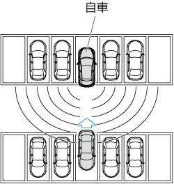 隣接した壁や駐車車両によりレーダーセンサー (リア) の検知エリアが妨げられているとき (レーダーセンサー (リア) の検知エリアが妨げられない位置まで、自車を後退させてください。)