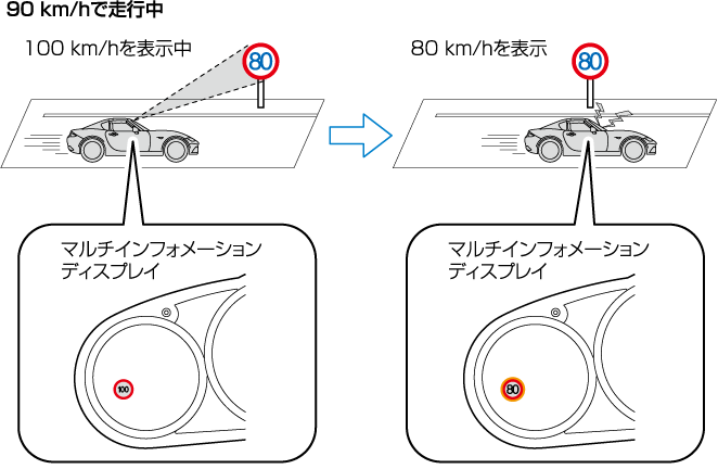 本システムは車両後退時の後方確認を支援するシステムです。本システムの作動には各種の制約があるため、自車後方に車両が存在する場合でもブラインド・スポット・モニタリング (BSM) 接近表示灯が点滅しなかったり、点滅が遅れる場合があります。必ず、運転者の責任において後方を確認してください。