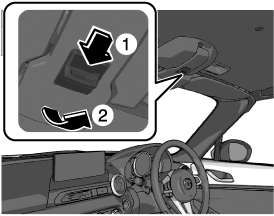 ソフトトップを開けるときは、リアウインドーデフォッガー (曇り取り) スイッチがOFFになっていることを確認してください。デフォッガーの熱でソフトトップや内装材が損傷するおそれがあります。