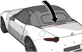 ソフトトップ (幌) の汚れを水で洗い流すとき、窓ガラスと幌の合わせ目付近に直接水をかけないでください。車内に水が入るおそれがあります。