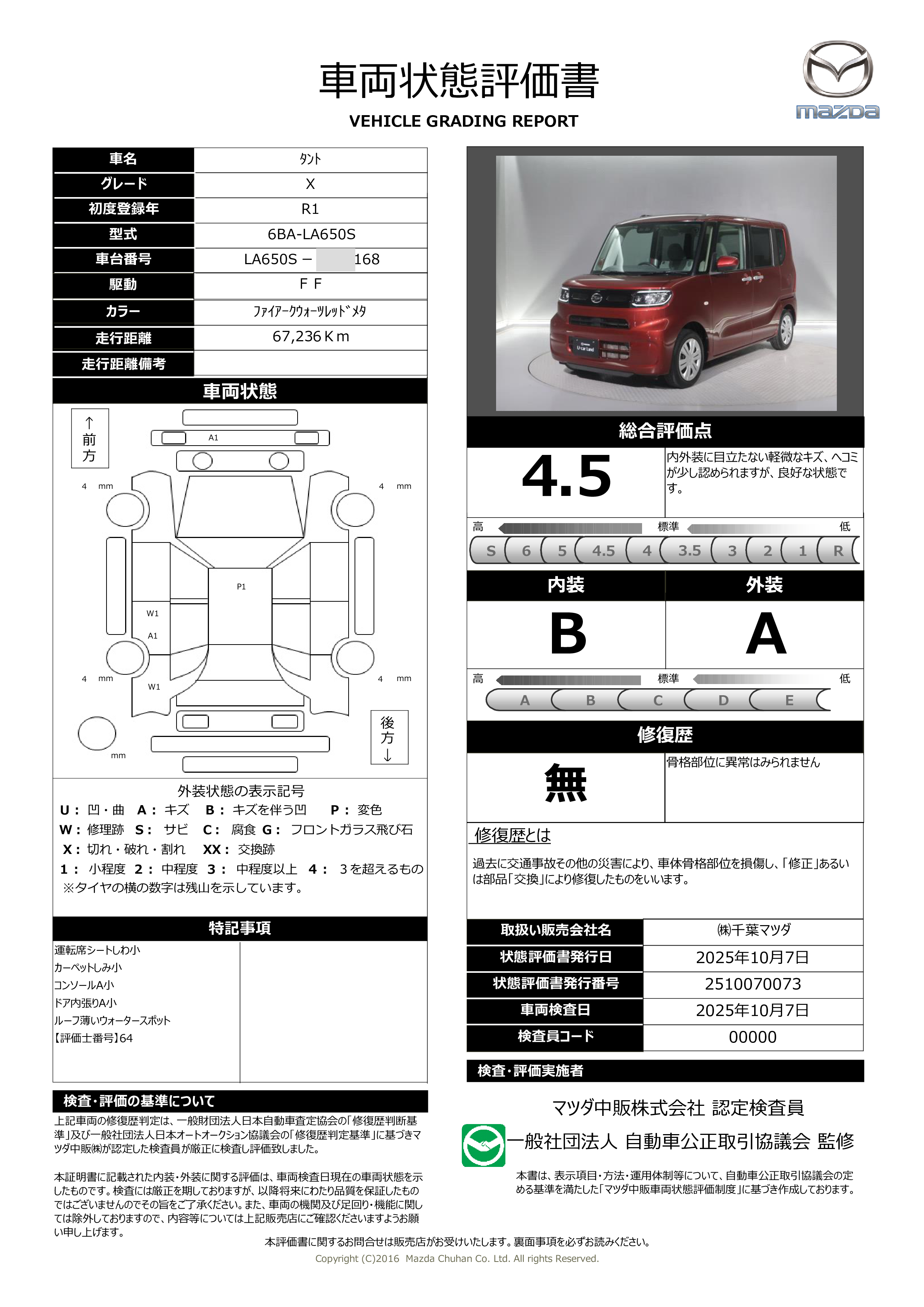 - 付 (一般保証10000km 6ヶ月)
