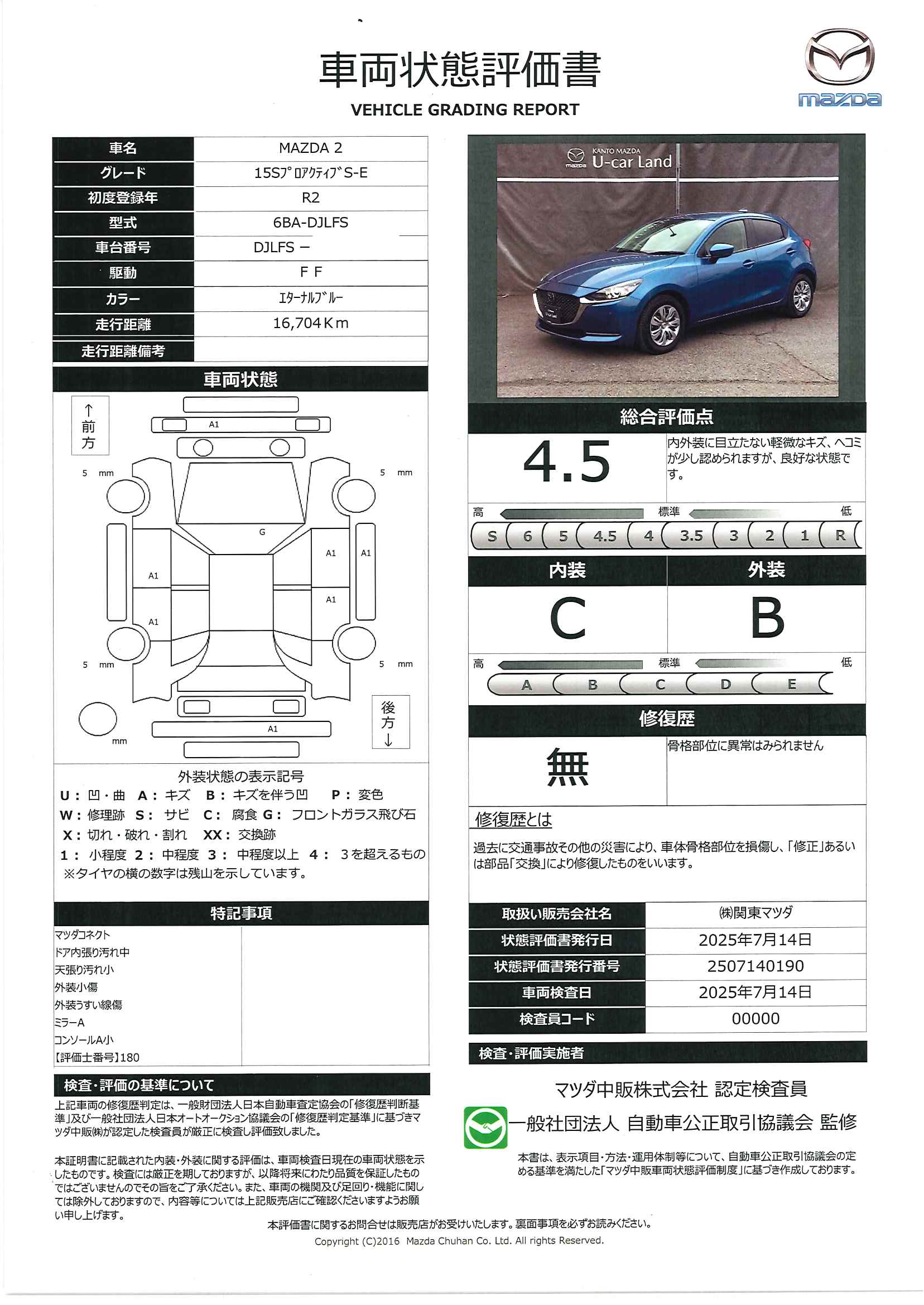 - 車両状態評価書