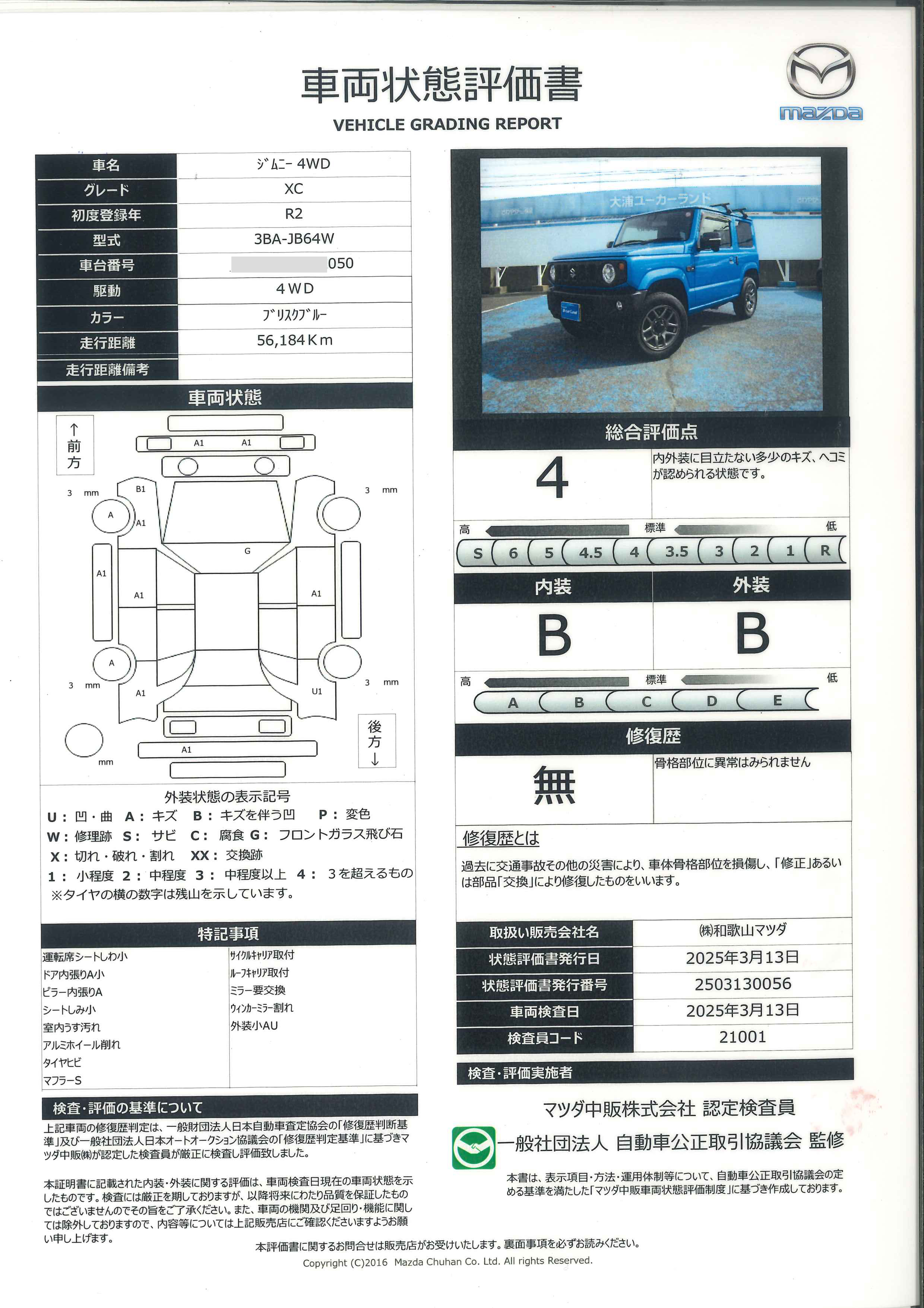 - 付 (1年走行距離無制限保証)