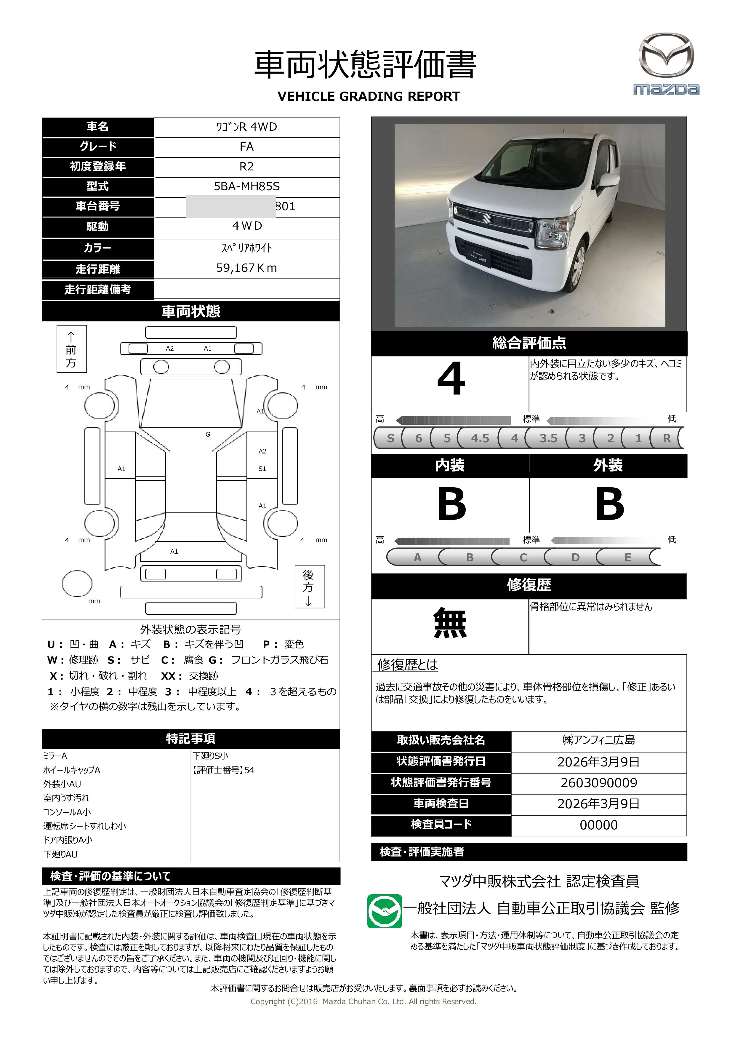 - 付 (1年走行距離無制限保証)