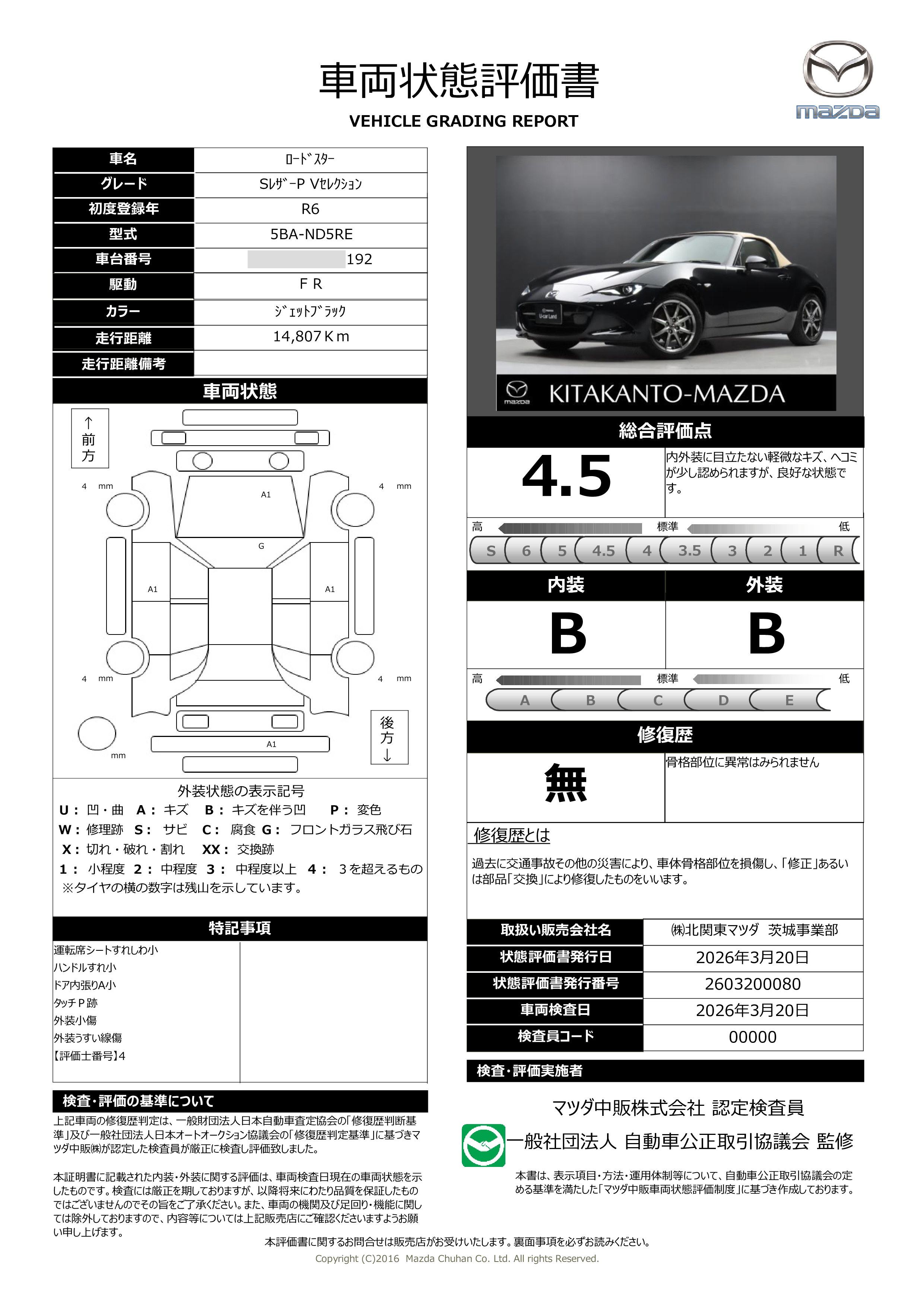 - 付 (1年走行距離無制限保証)