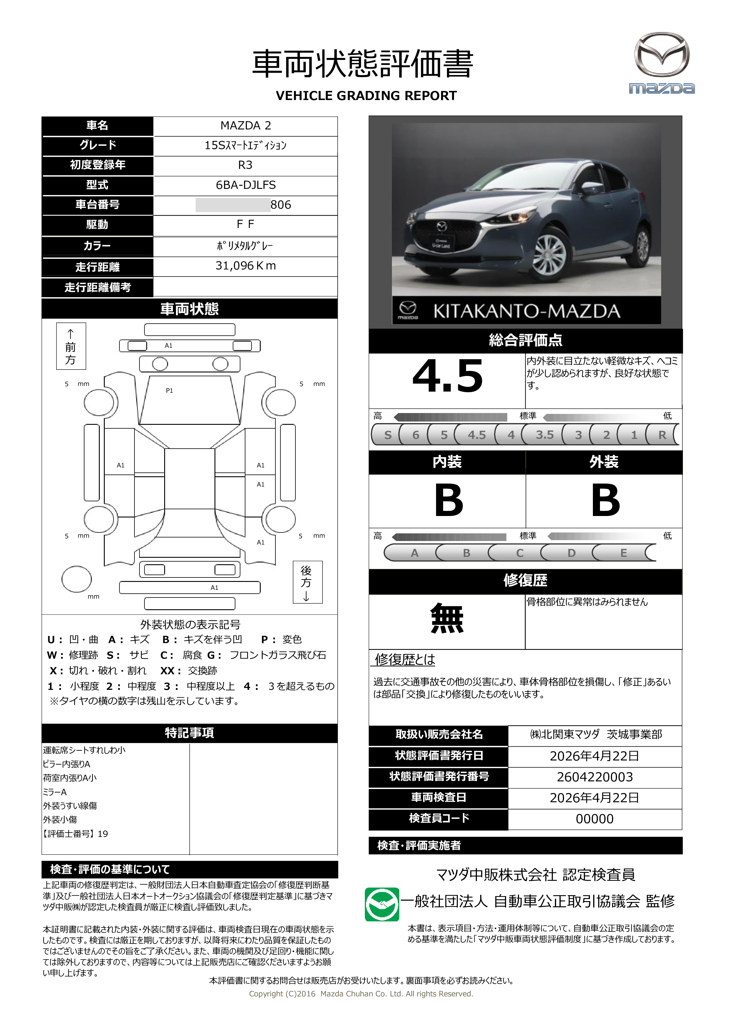 - 付 (1年走行距離無制限保証)