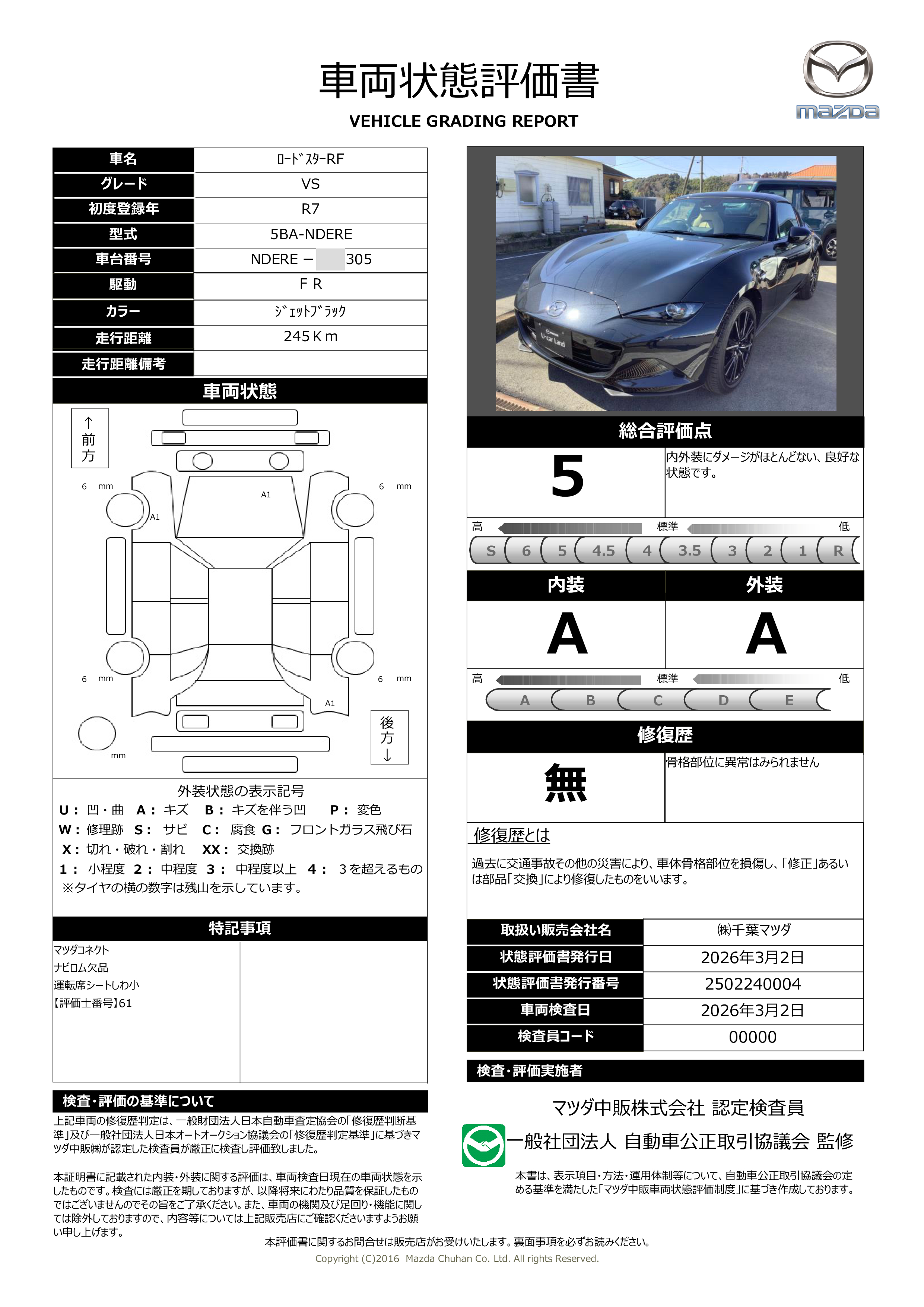 - 付 (1年走行距離無制限保証)