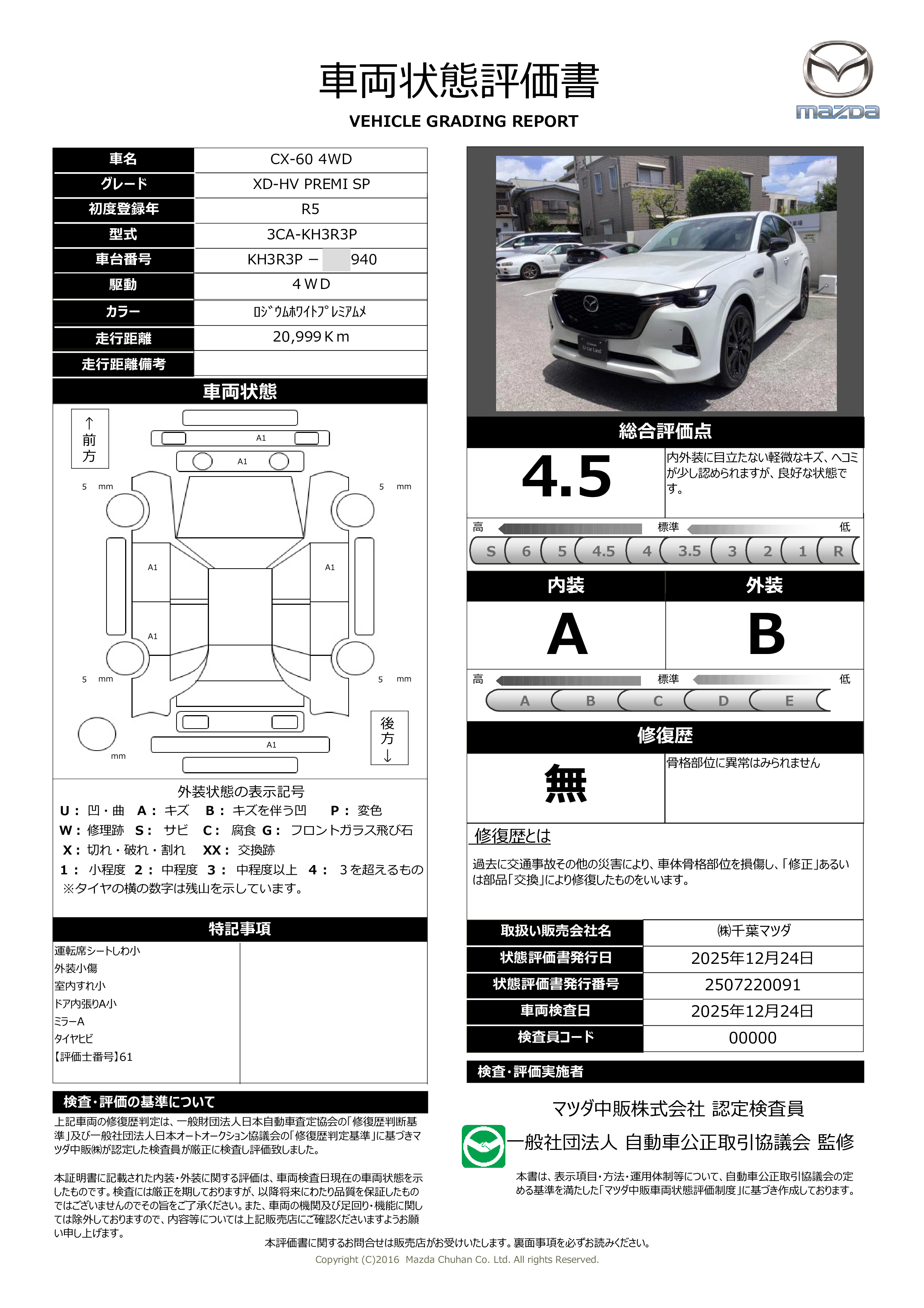 - 付 (1年走行距離無制限保証)