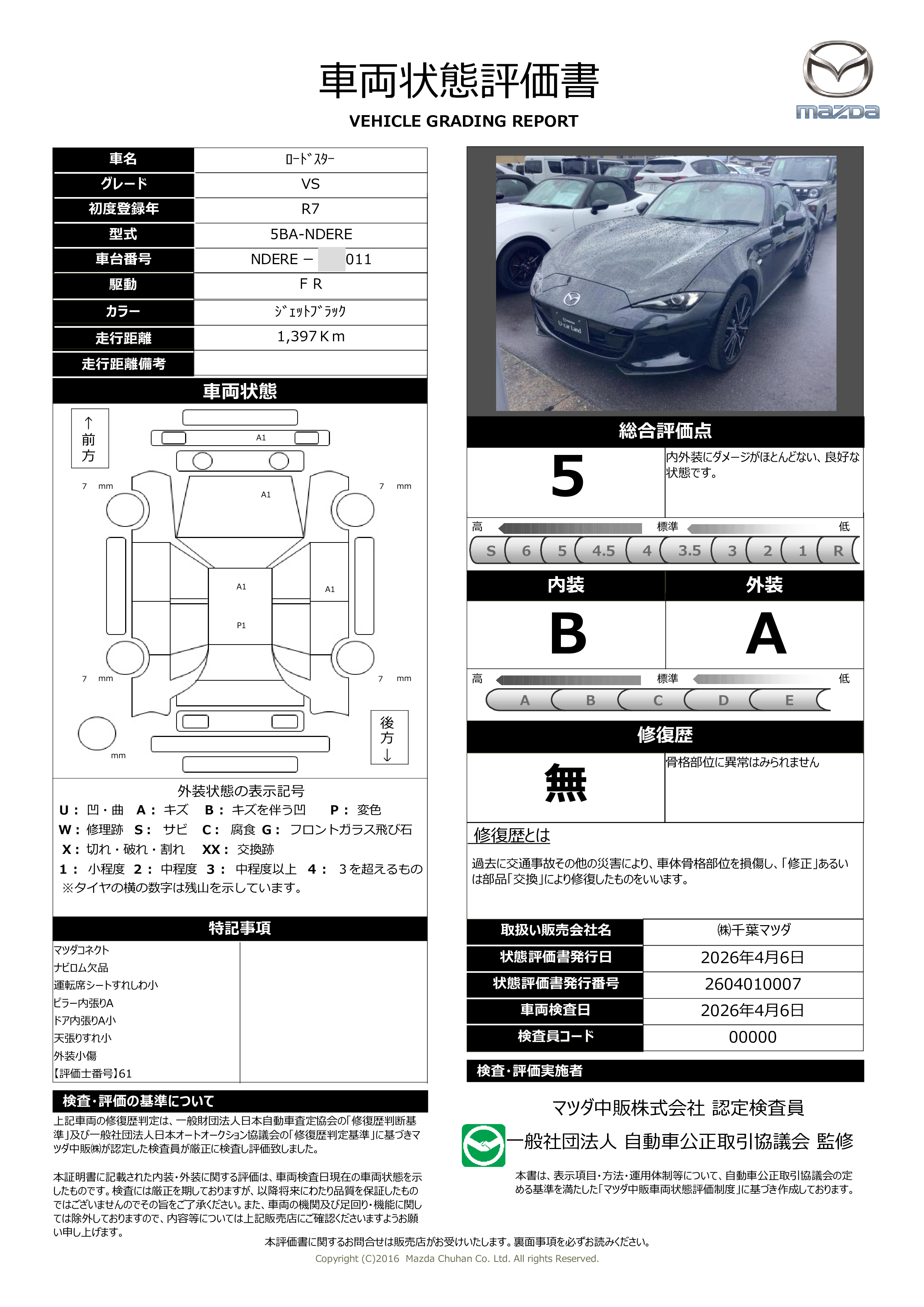 - 付 (1年走行距離無制限保証)